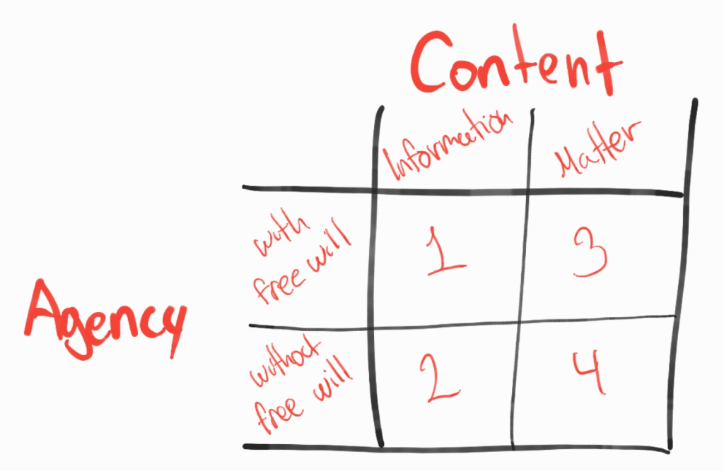 Agency, as expected, is a bit more complicated. It refers to the ability of the characters to alter the “natural” flow of things. Another way to see it is by considering if their actions (in the past) have consequences (in the future). To identify if free-will exists we could ask, is it possible to the alter the curse of the story? If the answer is yes, the character has agency. We can see this scenario in the movie Looper. In the film, anything done in the past, or to people from the past, immediately changes the future. Conversely, if the answer is no, there isn’t free will. An enjoyable example of this situation is depicted in Harry Potter and the Prisoner of Azkaban, where the characters find themselves as spectators of past events.